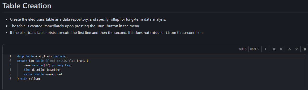 - If the elec_trans table exists, execute the first line and then the second. If it does not exist, start from the second line.